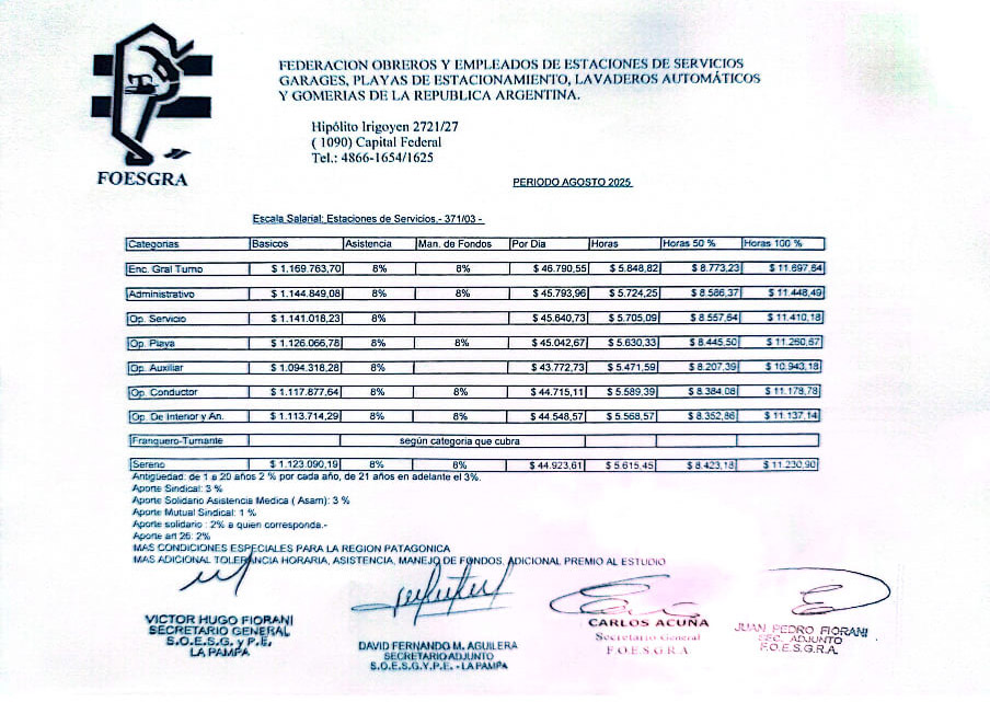 Escala Salarial Período Octubre 2025