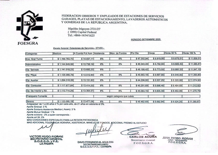 Escala Salarial Período Septiembre 2025
