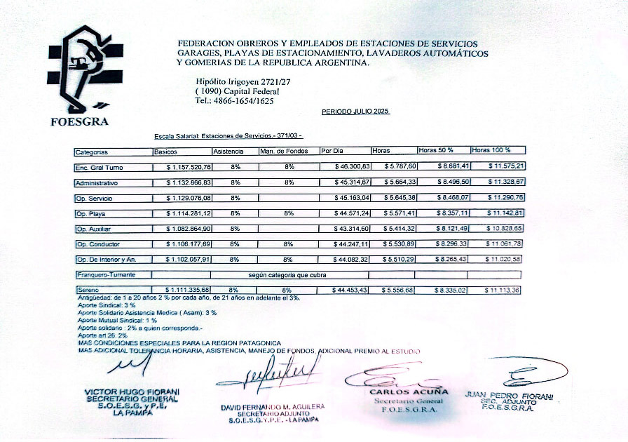Escala Salarial Período Julio 2025