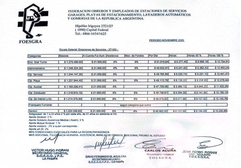 Escala Salarial Período Noviembre 2025