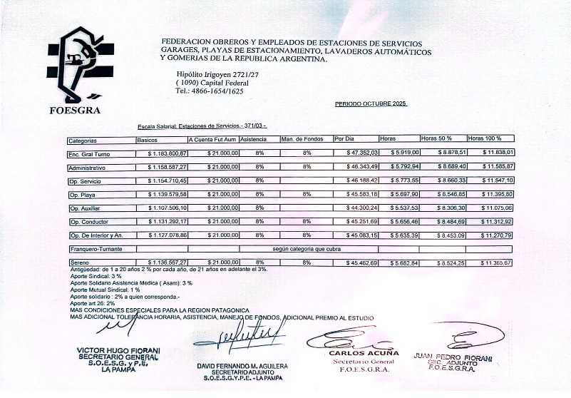 Escala Salarial Período Octubre 2025